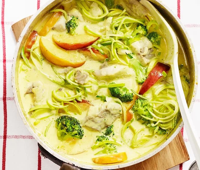 Currygryta med kokosmjölk och sej