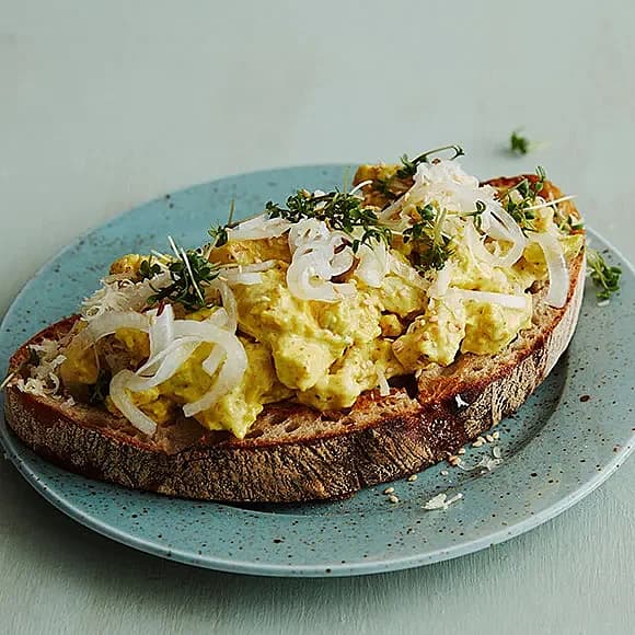 Toast med currykyckling och picklad silverlök