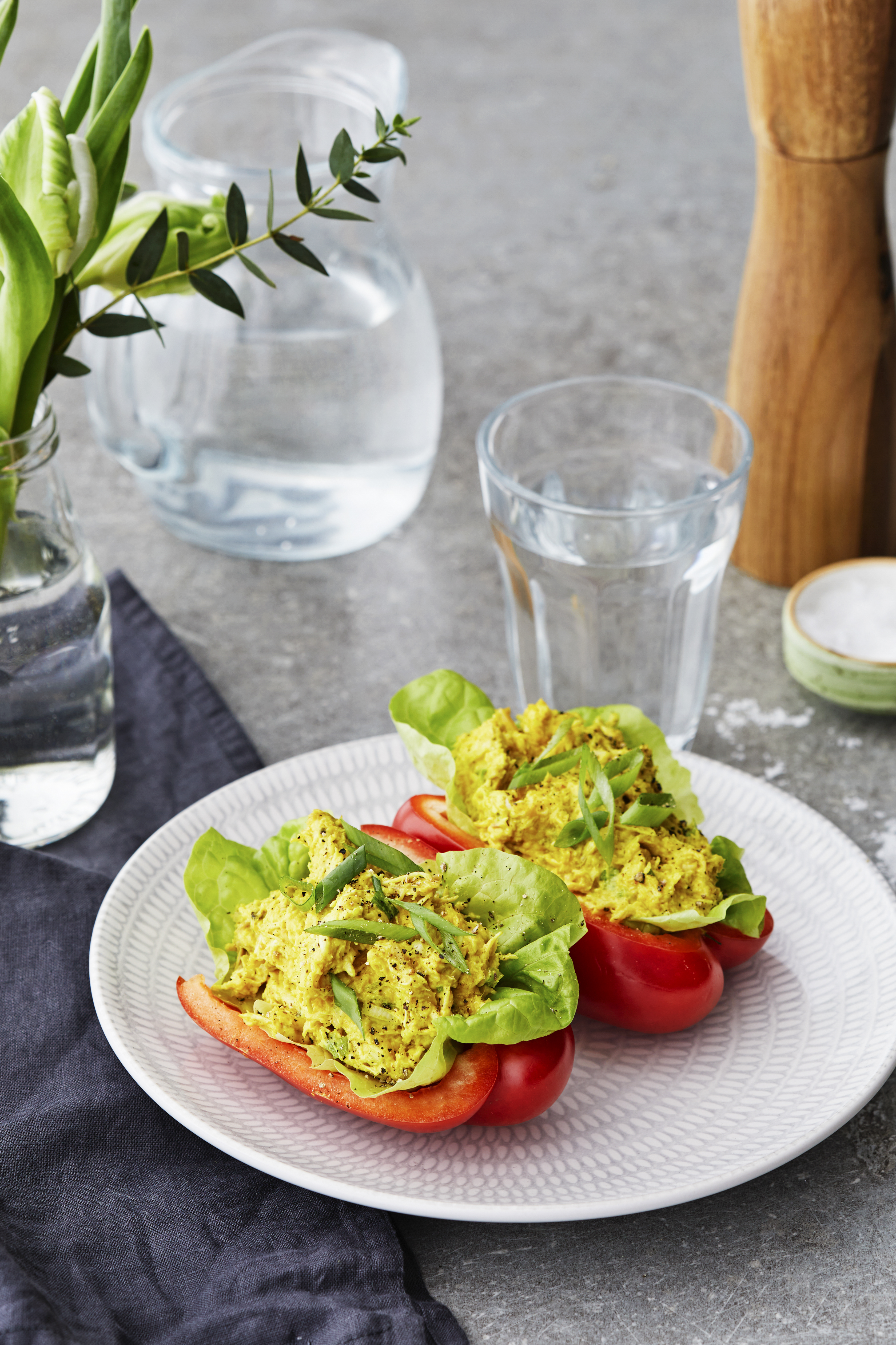 Fyllda paprikahalvor med currykyckling