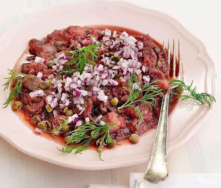 Matjessill med brynt smörkräm, brödkrisp och dill
