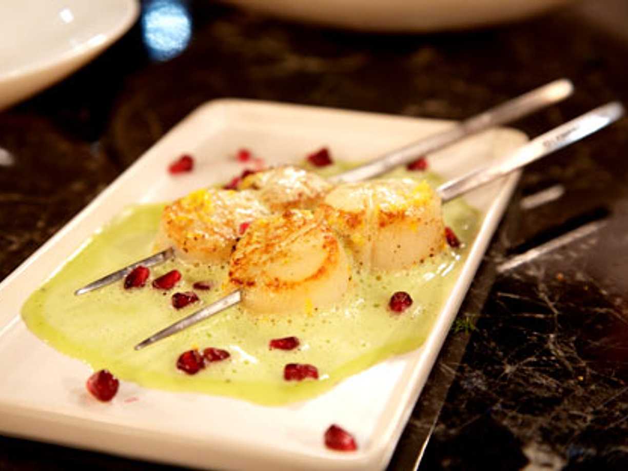 Skummig soppa på dill med kolja, pilgrimsmousseline och citronglaserade rotisar