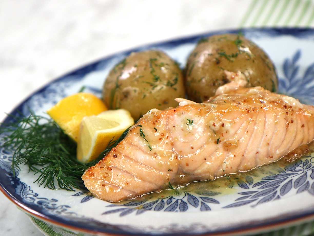 Stekt lax med skagenröra och dillpotatis