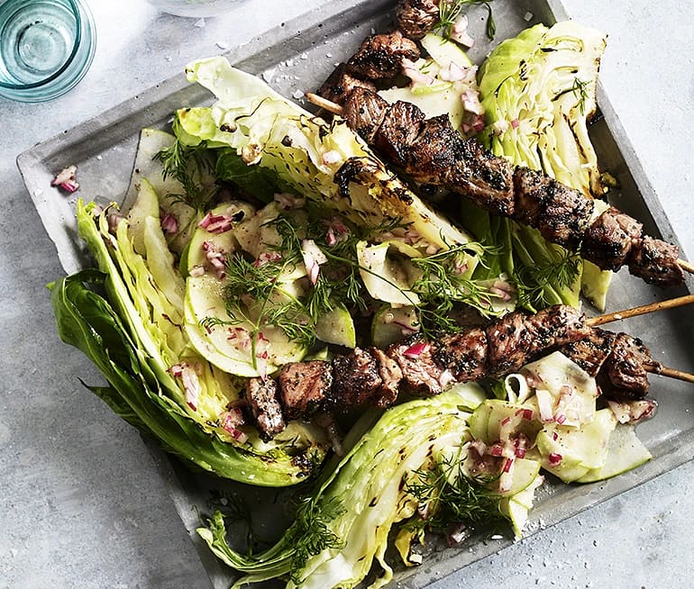 Spetskål på grillen med dressing och äppelsallad