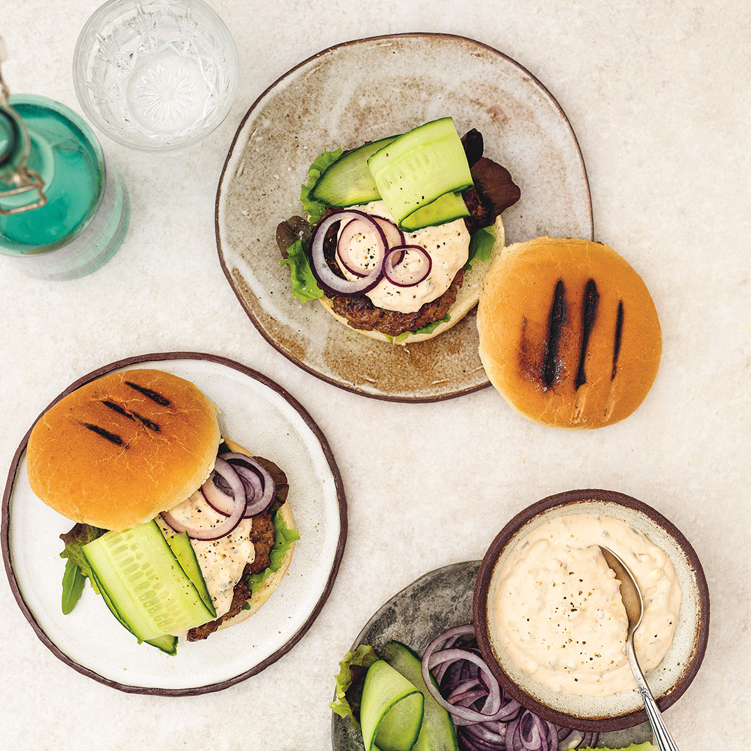 Högrevsburgare med hemmagjord dressing