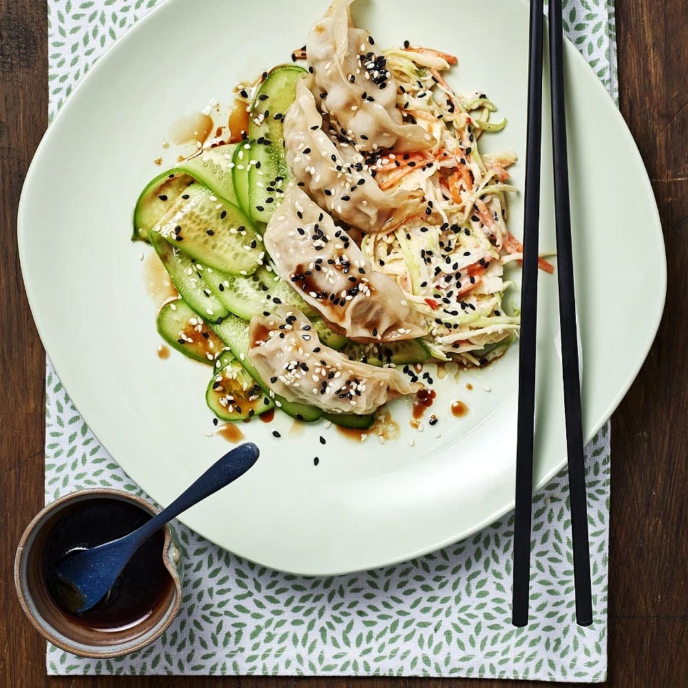 Dumpling "potstickers" med gurksallad