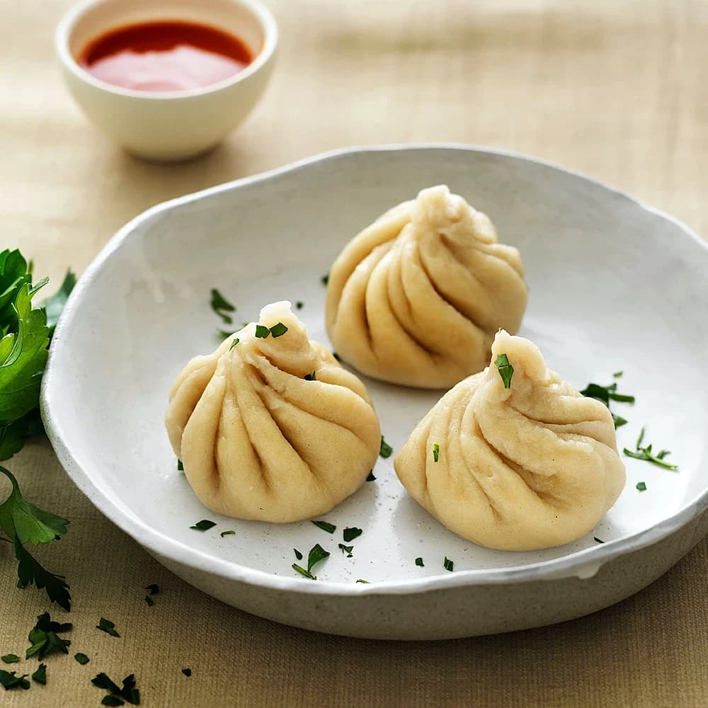 Kyckling momo med dumplings och sesamsås