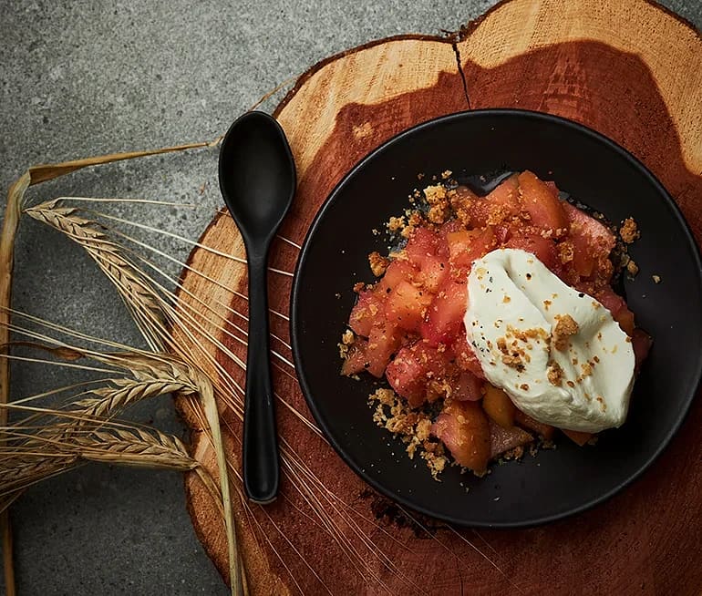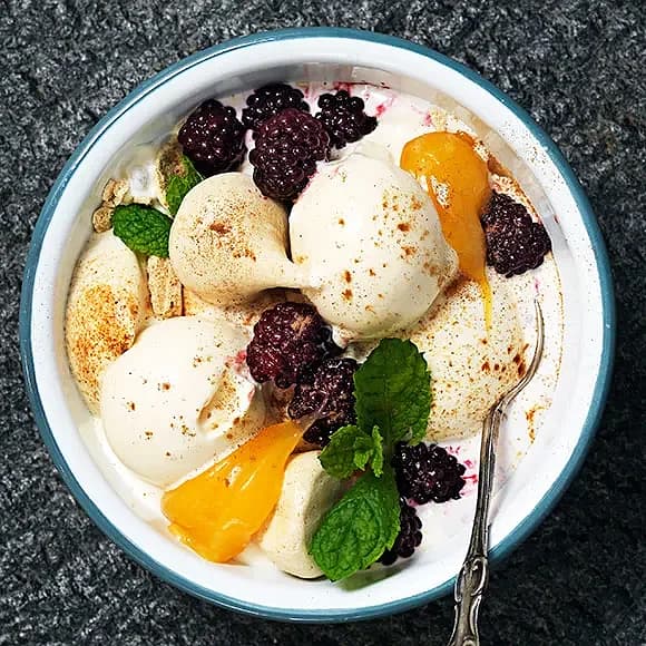 Veganska fattiga riddare med vaniljglass och björnbärssylt