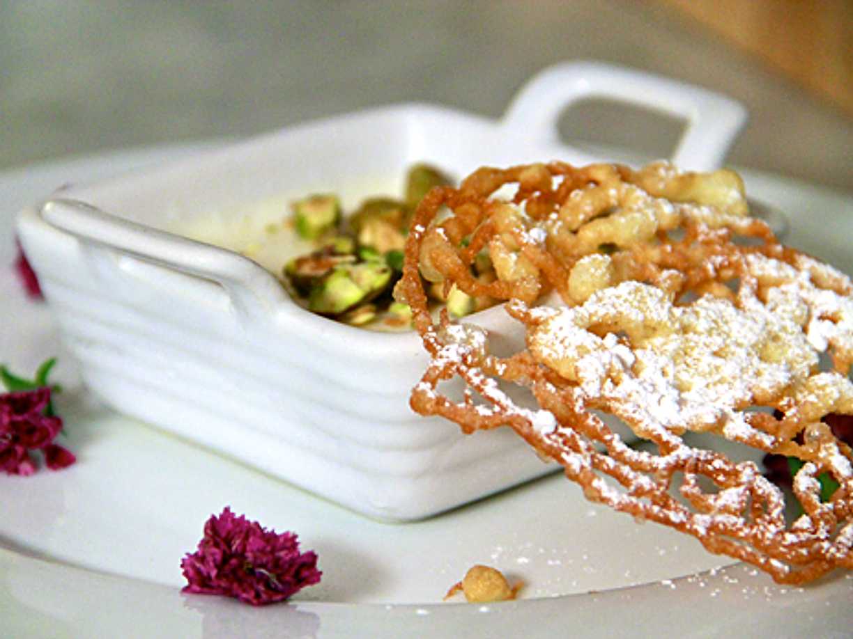 Sockrade, friterade tortillas med snabb blåbärssorbet