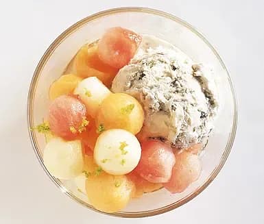 Chokladglass med karamelliserade bananer och kokos- och bananbräck