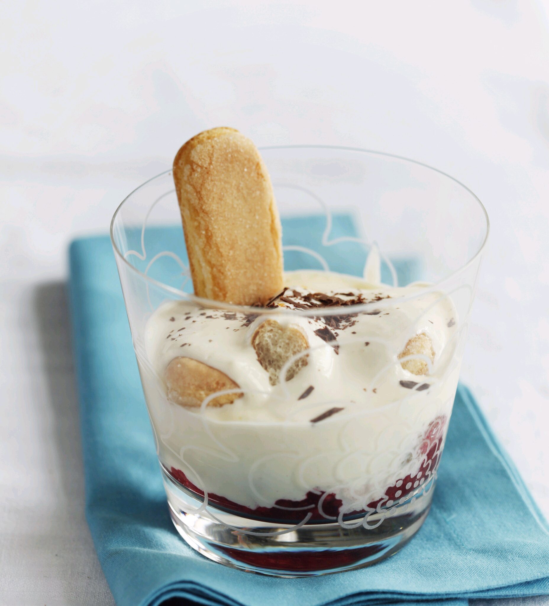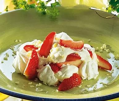 Gräddfilspannacotta med mandelskorpor och jordgubbar i vin santo