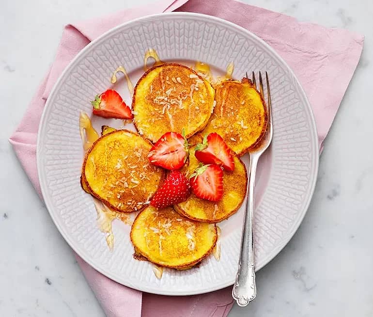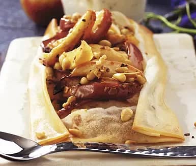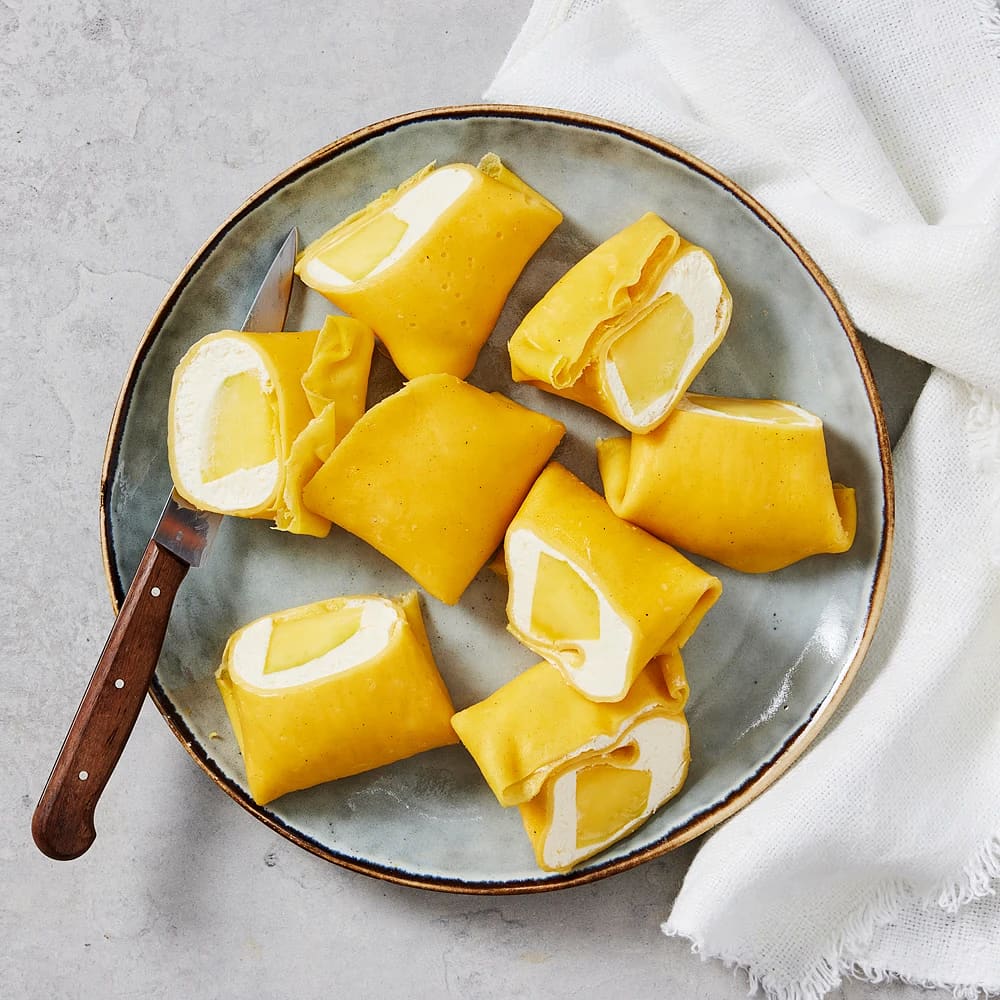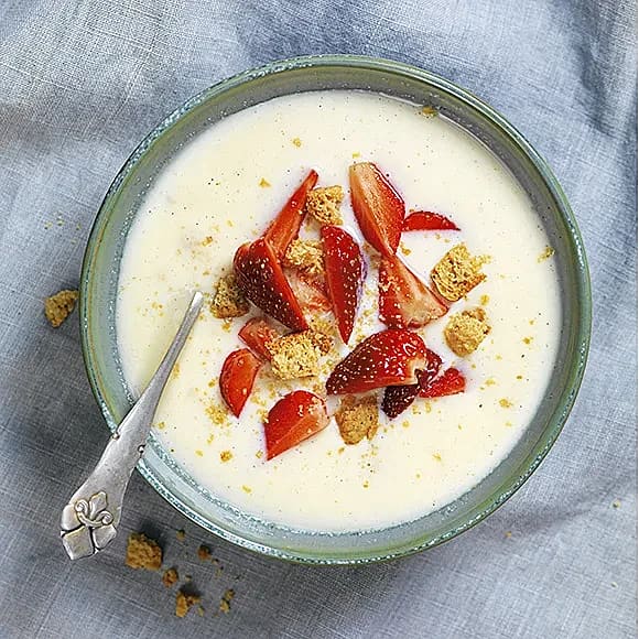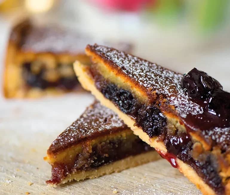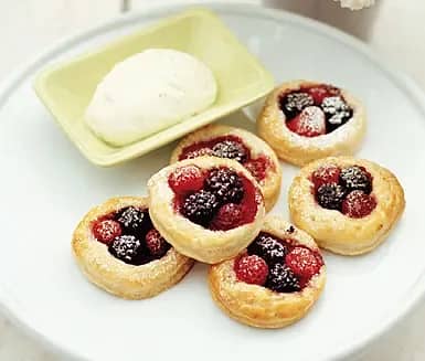 Bakelse med rabarber- och jordgubbssylt och vaniljcrème fraiche