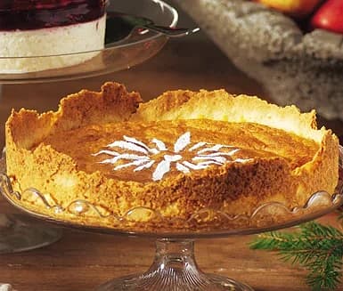Lingonbakat äpple med kardemummakräm och kavringschips