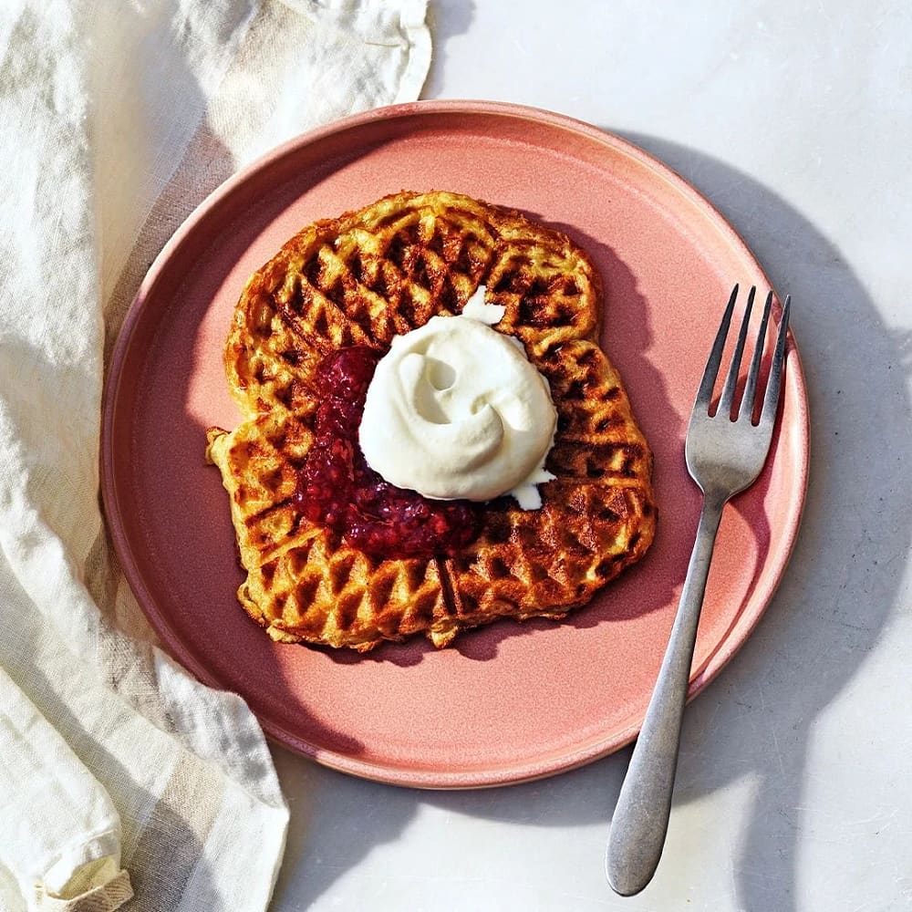 Frasvåfflor med vispad hallonpannacotta och lakritskolasås
