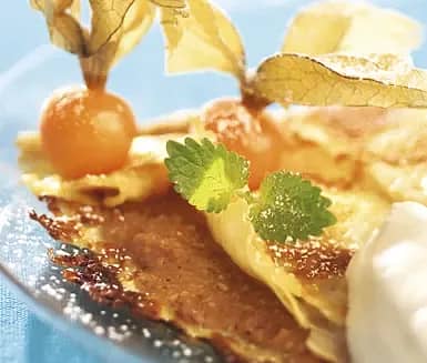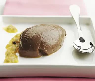 Choklad- och apelsinpudding med karamellnötter och syrlig grädde