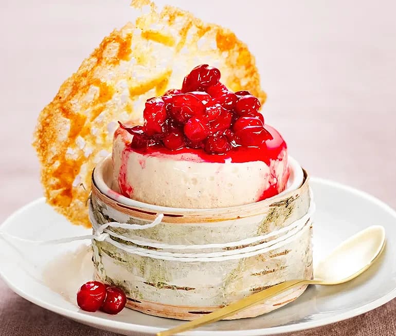 Farmor Gretas lingonparfait med hemmagräddade havreflarn