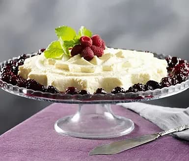 Blåbärs- och pistagekaka med blåbärs- och vaniljglass