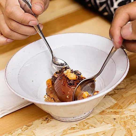 Brynt smör-glass med krispig choklad