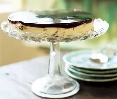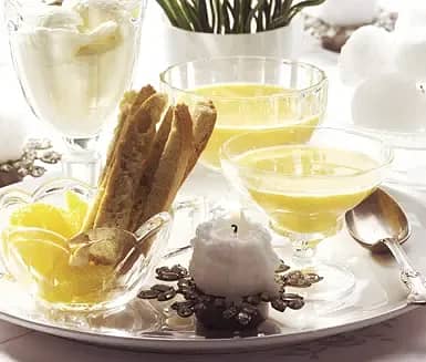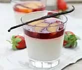 Gräddfilspannacotta med apelsin, vanilj och jordgubbsgelé