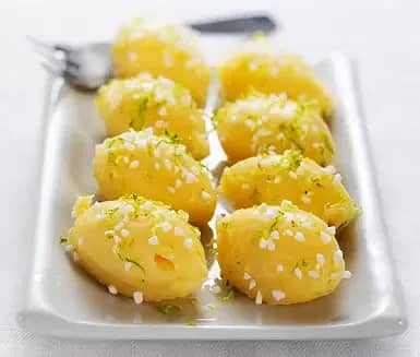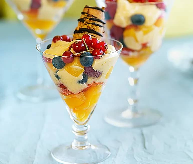 Vit choklad- och kokosgratinerad mango med limeyoghurt