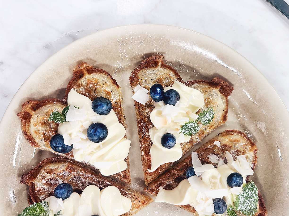 Färskostmousse med bär, basilika, kardemumma och kaksmulor