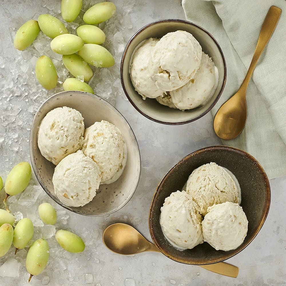 Citrus- och ingefärsmarinerad frukt med kokosglass