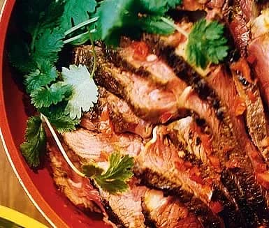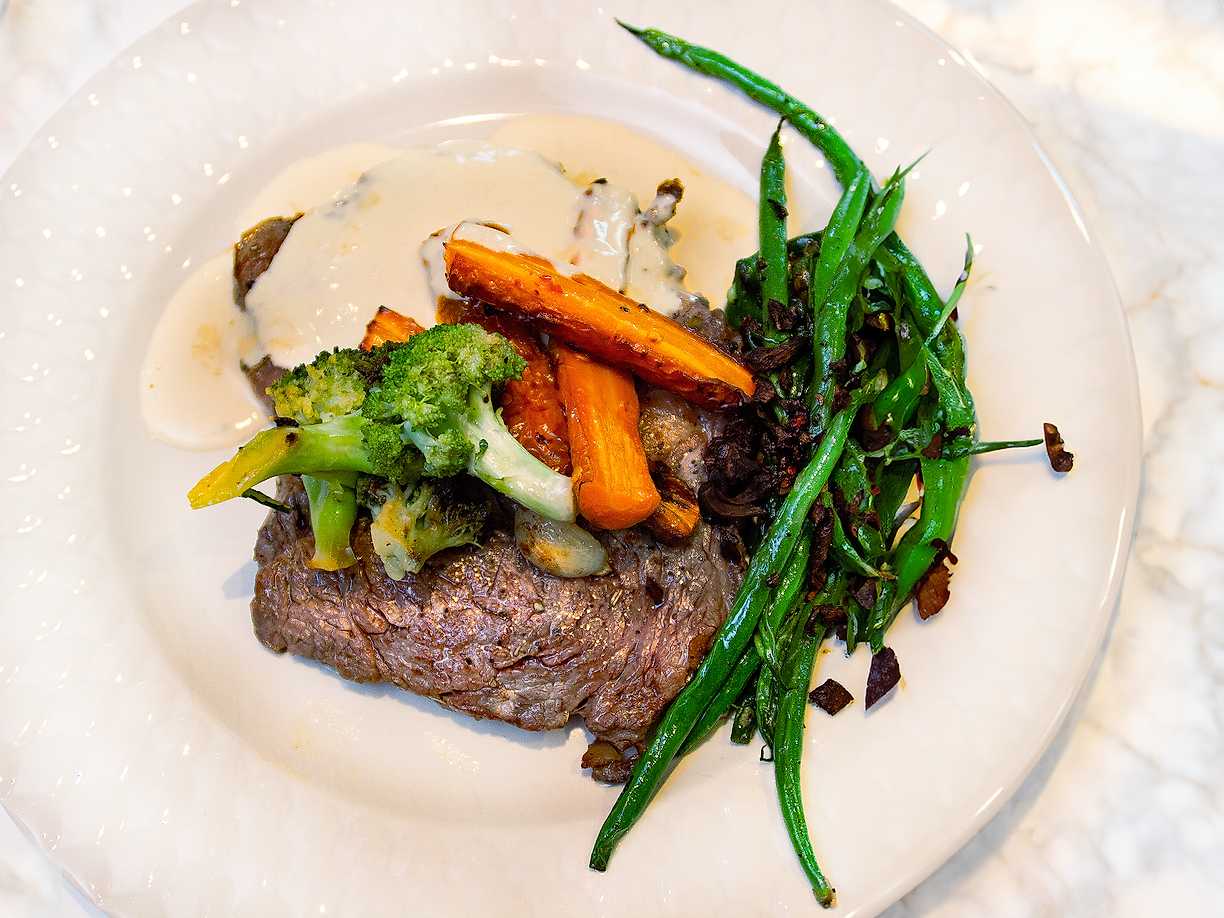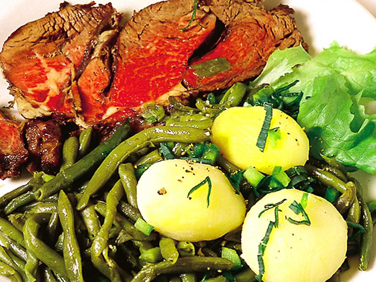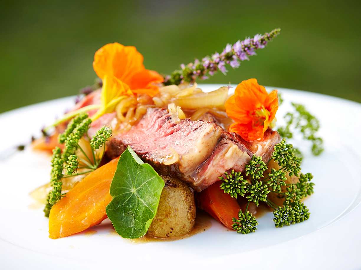Entrecôte med rotfrukter och ljummen rödvinsvinägrett