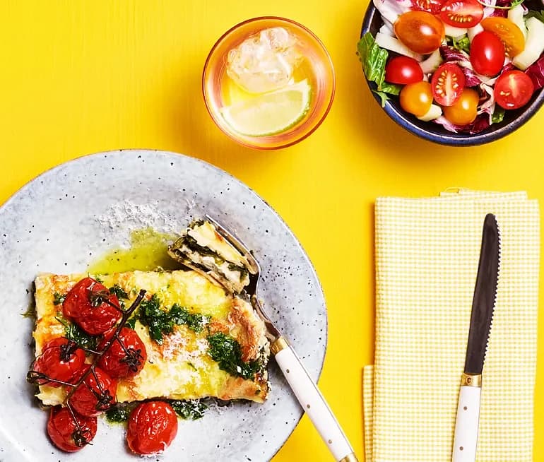 Cannelloni med svamp, färskost och oregano i tomatsås
