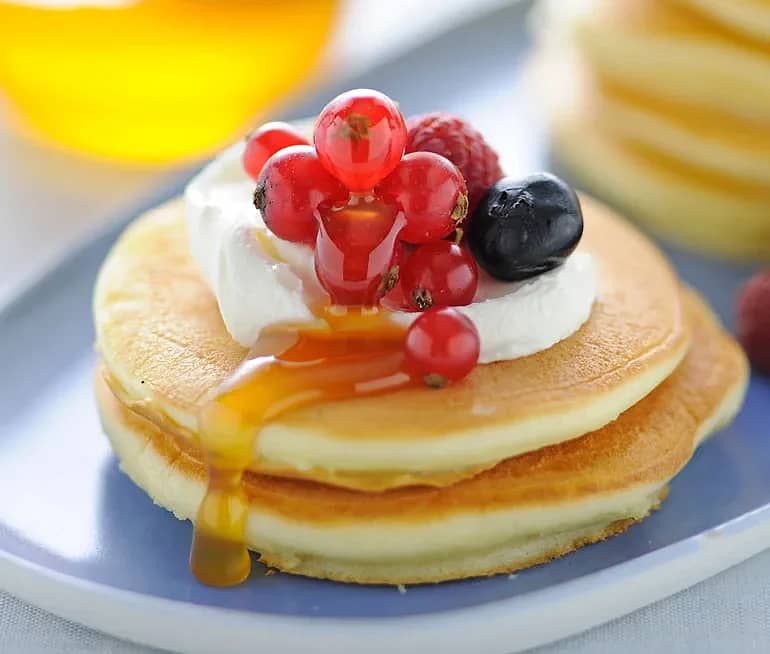 Smördegsvåfflor fyllda med färskost, blåbär och hallon