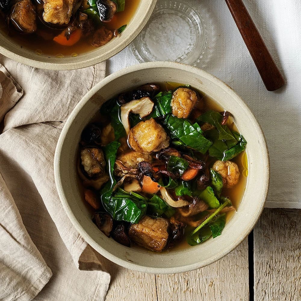 Kräftsoppa med timbal på färskost, kräftor och löjrom