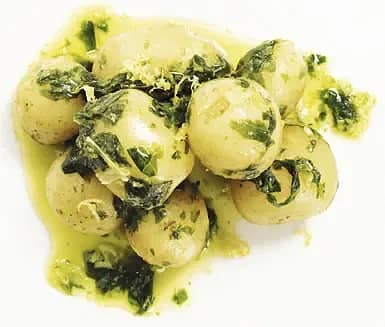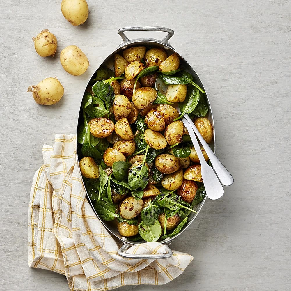 Vitlöksrostad färskpotatis med spenat