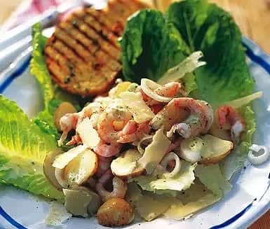 Caesarsallad med färskpotatis och räkor