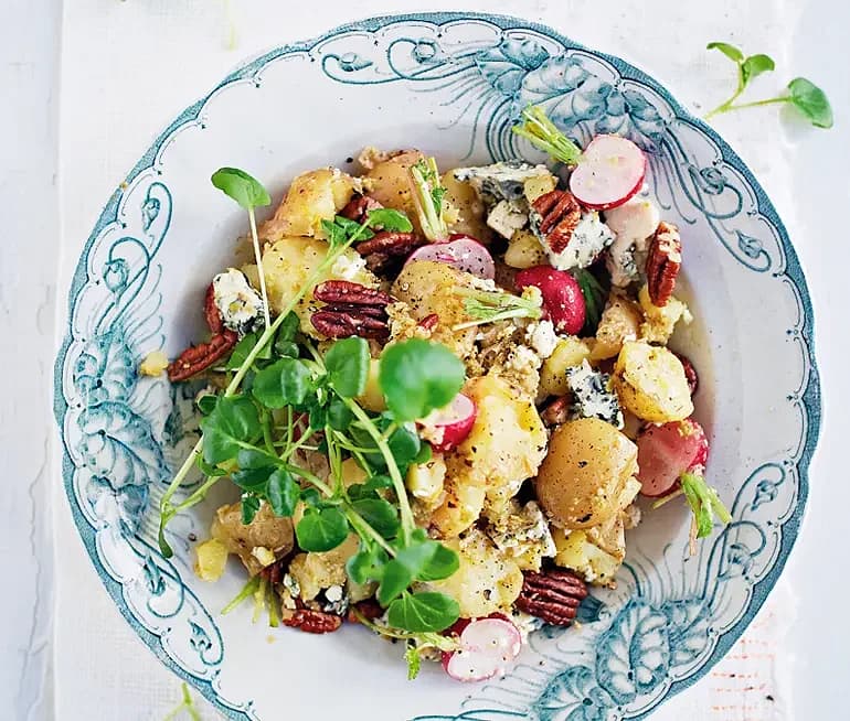 Sallad på krossad färskpotatis och ädelost