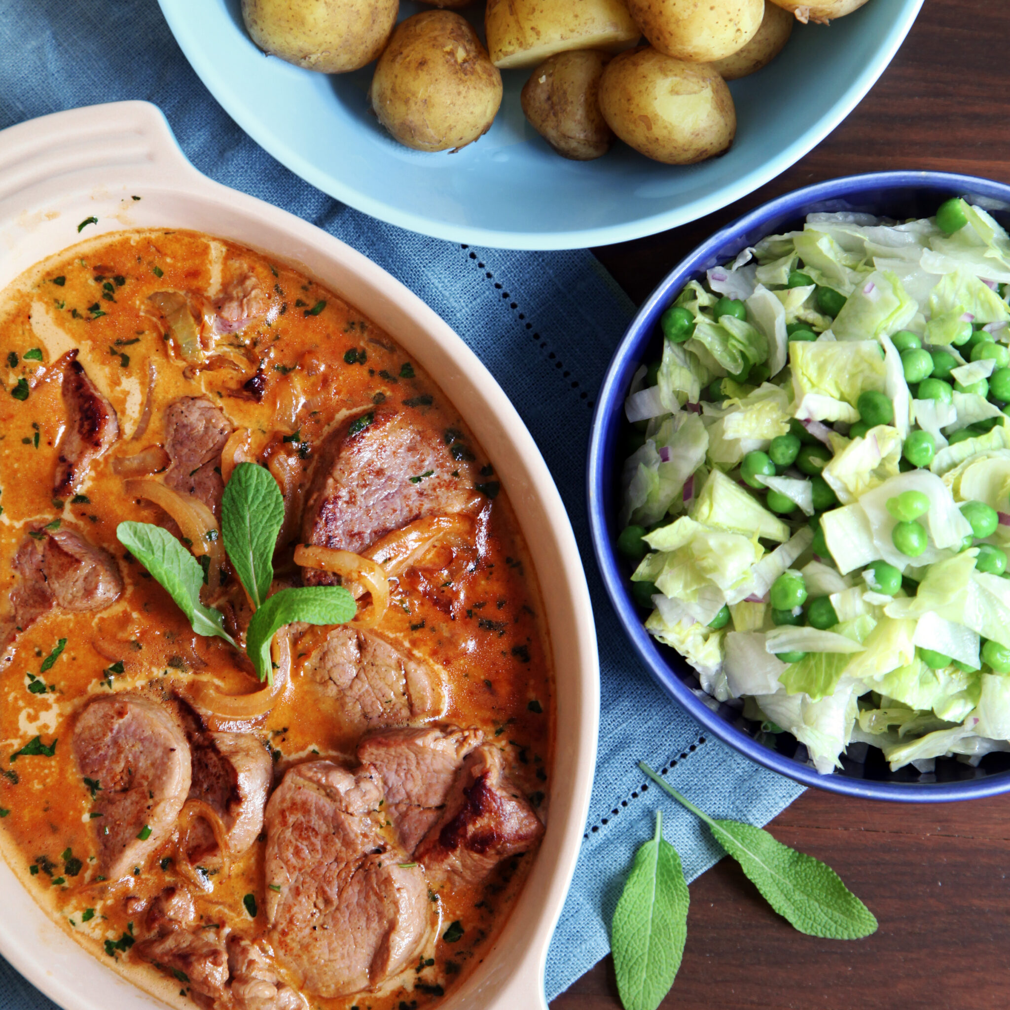 Salviakryddad fläskytterfilé i gräddsås med färskpotatis