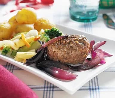 Fetafylld biff med rödlök
