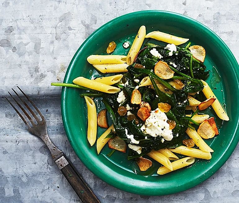Grekisk pasta med fetaost, oliver och färsk oregano
