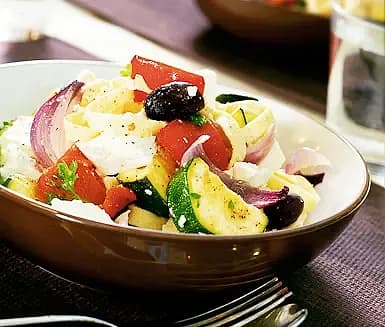 Pasta med grönsaksröra och fetaost