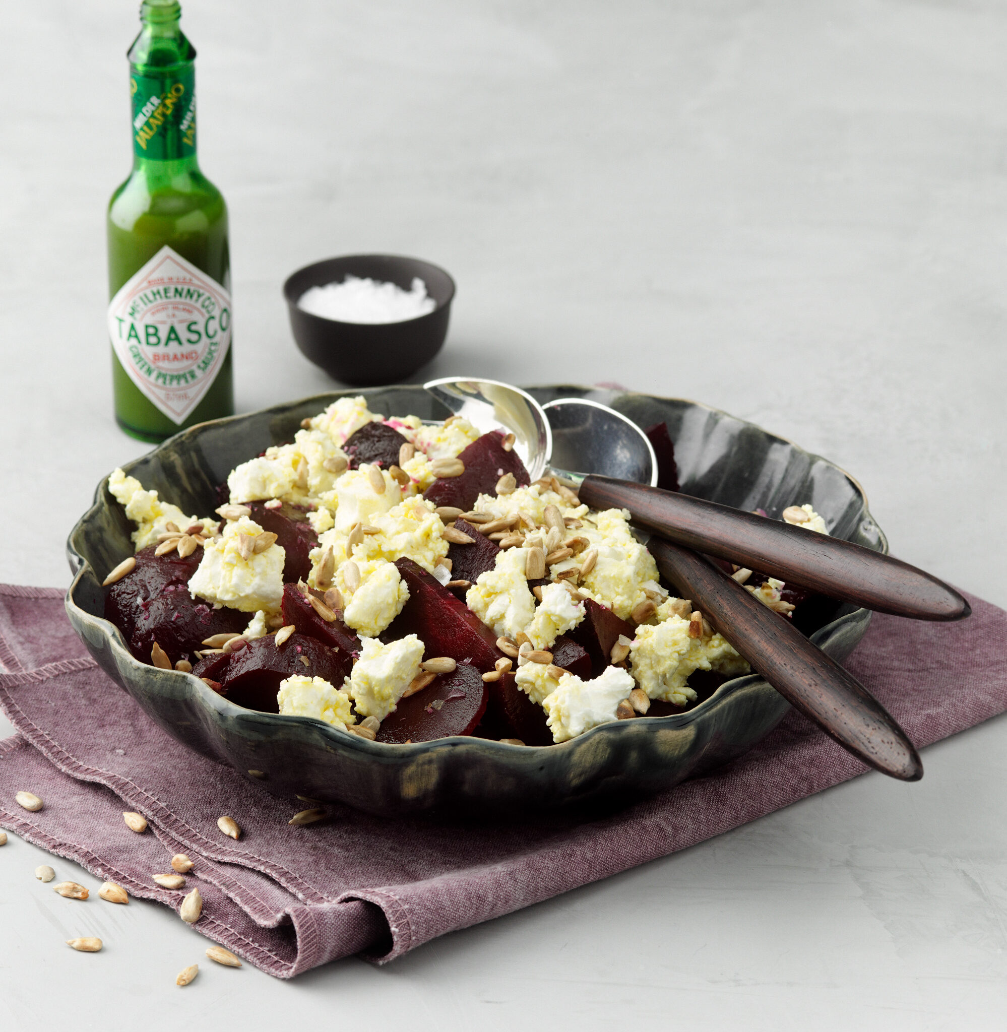 Betor med rostade solrosfrön och marinerad fetaost