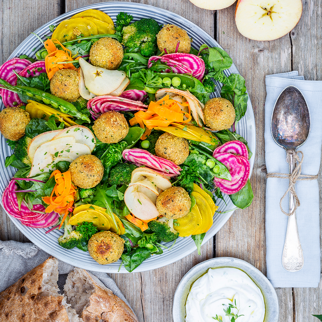 Sojabakad laxfilé med rotfrukter och fetaostdipp + Rostad rotfruktsoppa med timjan och bönkrisp