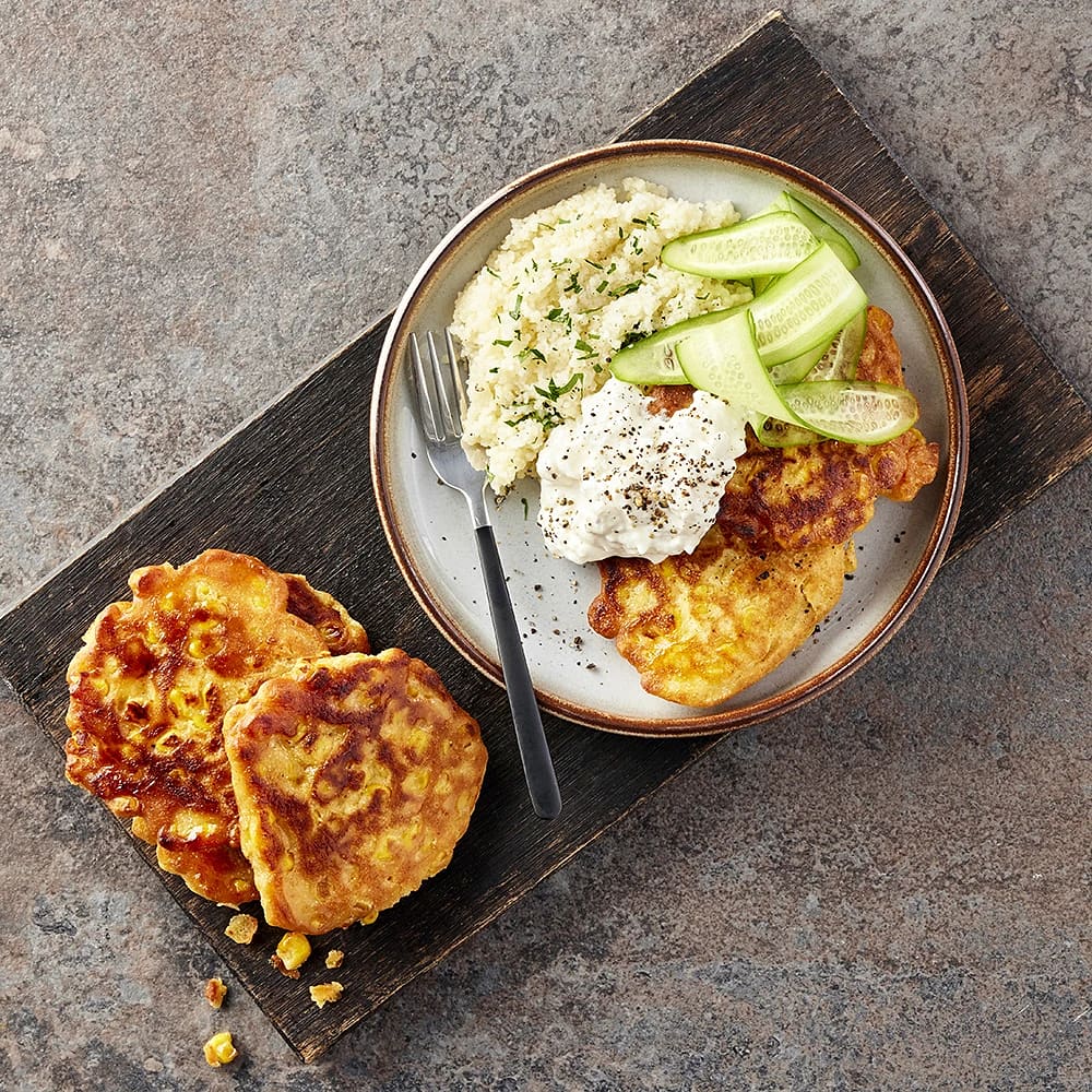 Majsfritters med fetaostyoghurt och couscous