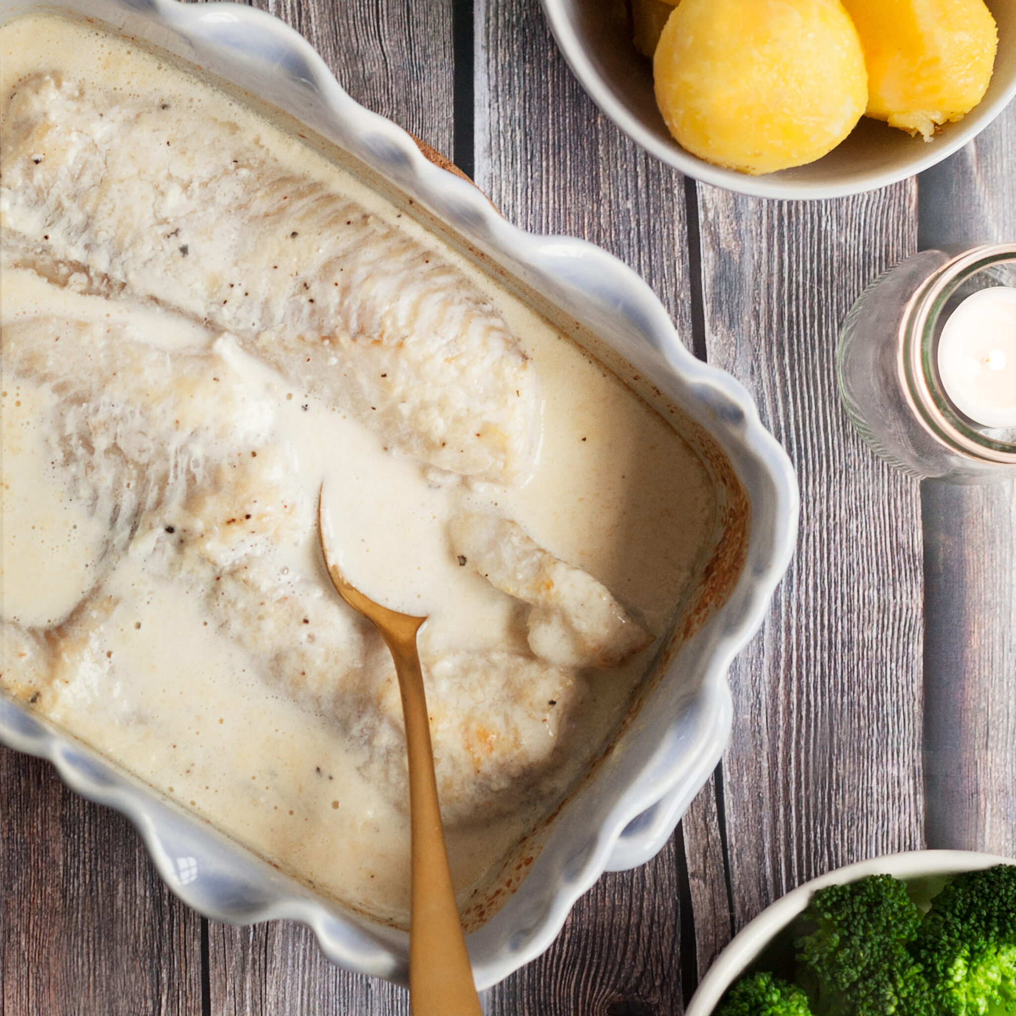 Snabba fisken med kryddgrädde