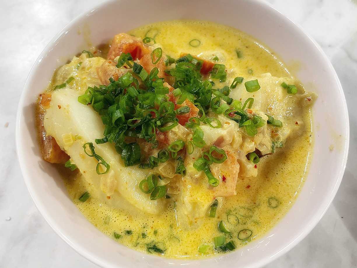 Thaisoppa med fisk, curry och pak choi