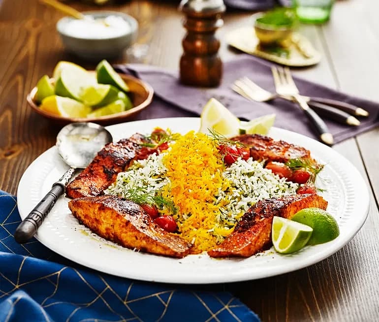 Sabzi polo ba mahi- fisk med dillris