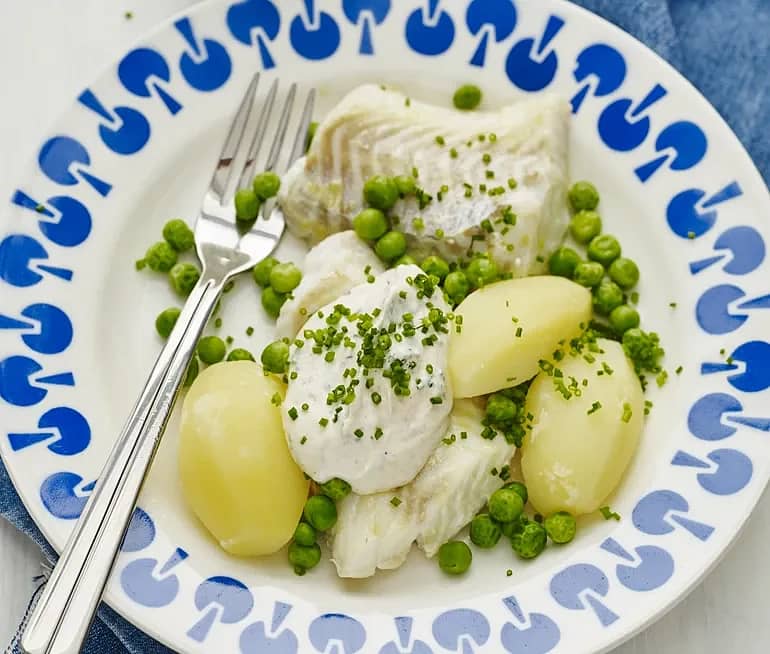 Kokt fisk med äggsås