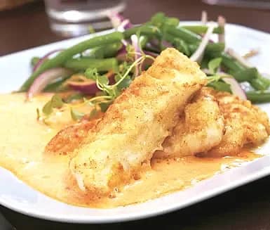 Stekt fisk med krämig paprikasås