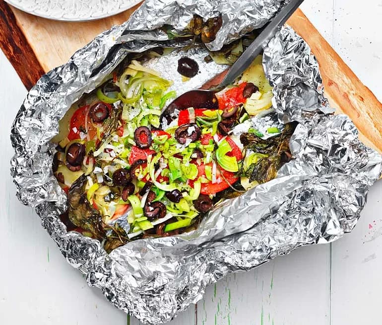 Cataplana, grillad fisk i foliepaket
