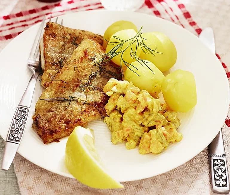 Dillstekt fisk med currypickles