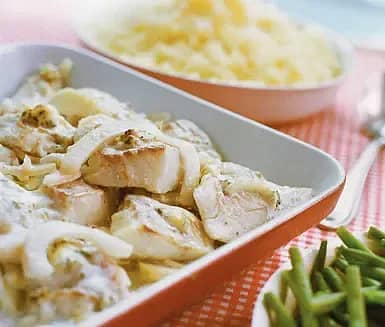 Kurts fina fiskgratäng med skånsk senap, salladslök och potatis