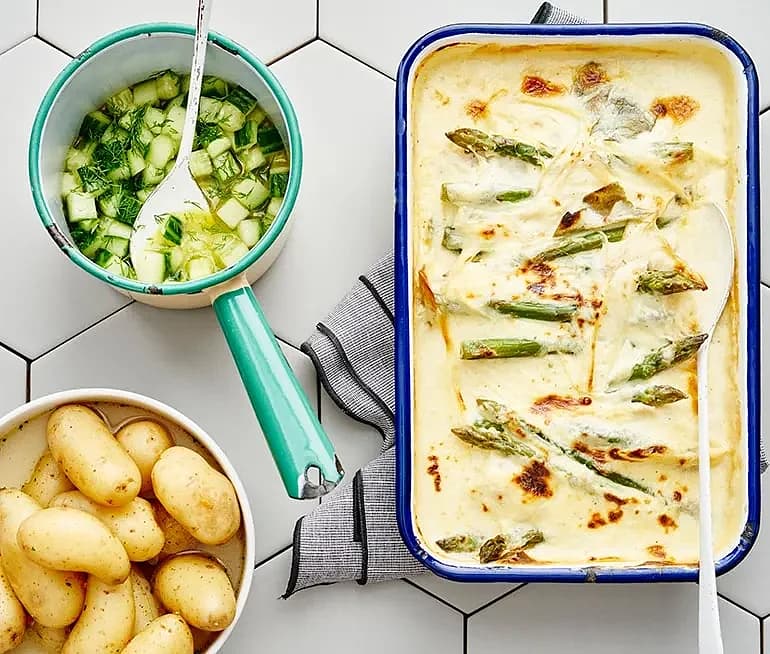 Oklassisk fiskgratäng med limemarinerad gurka