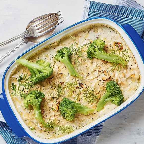 Gräddig fiskgratäng med dill och broccoli