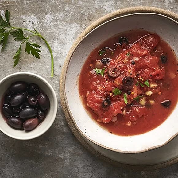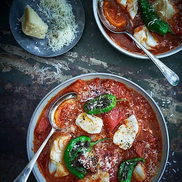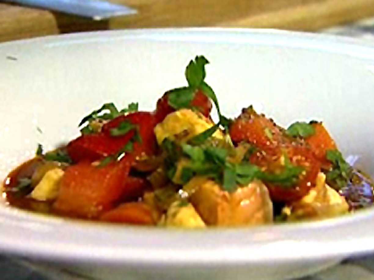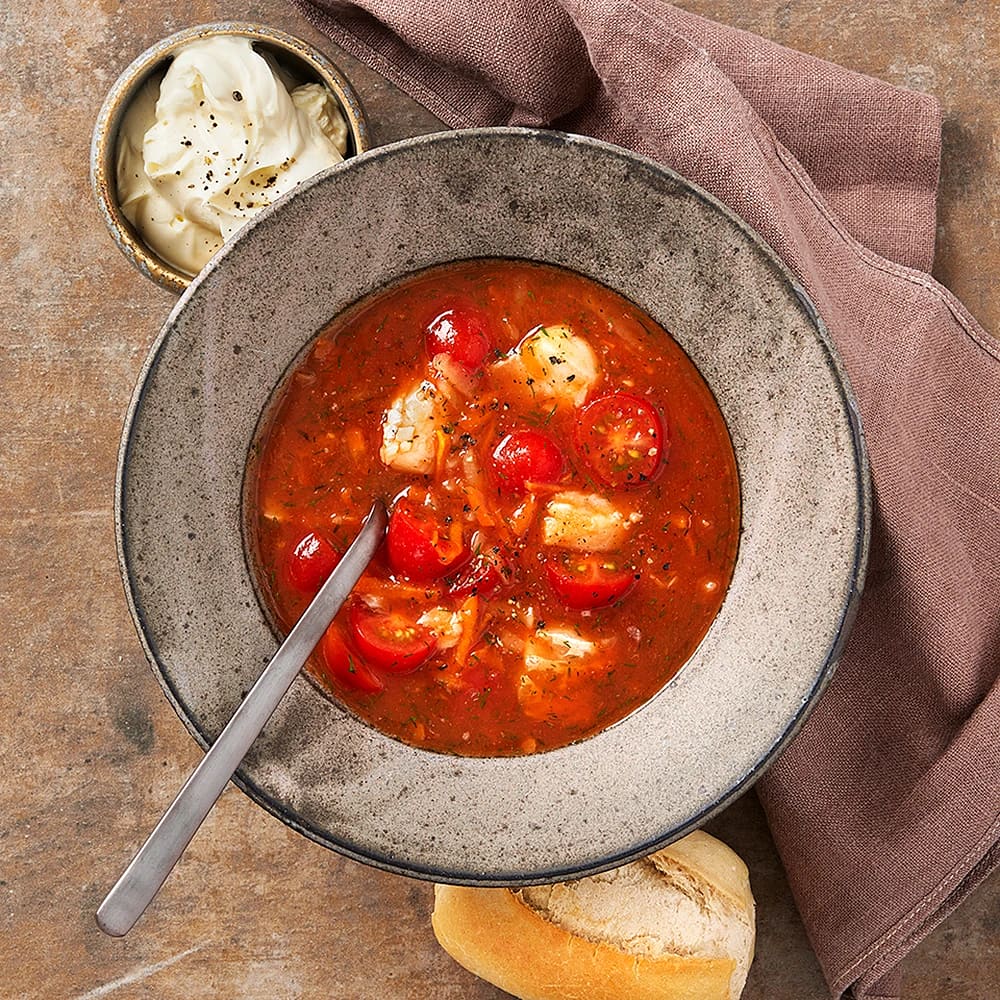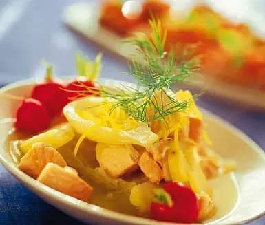 Fiskgryta i ugn med fänkål, tomat och rödstrimma